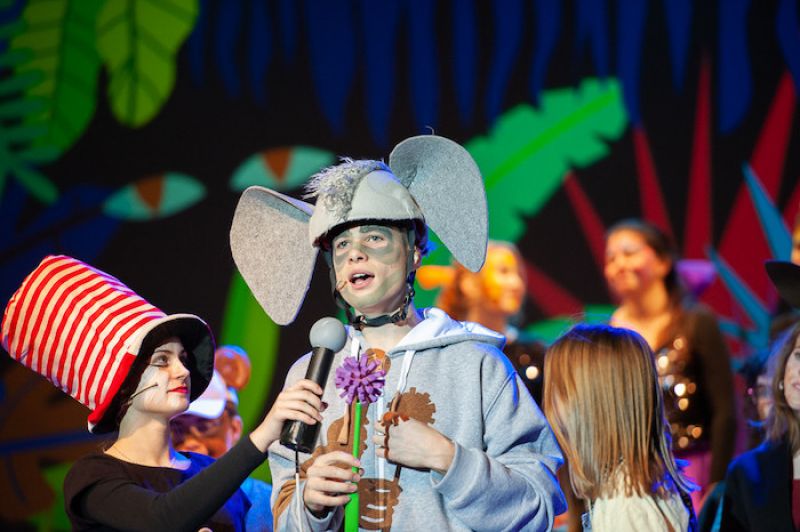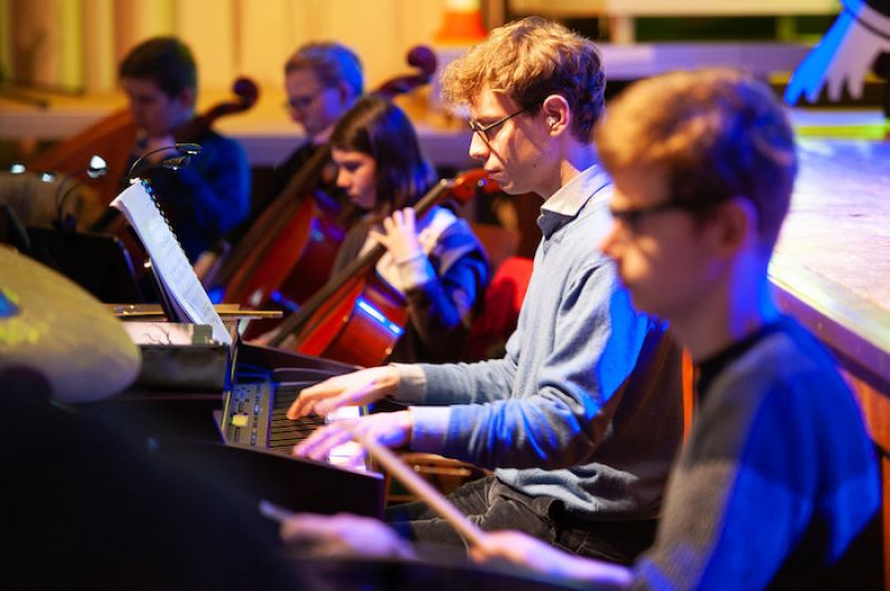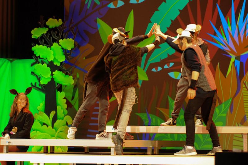 Grossproduktion der Musikschule Unteres Fricktal mit rund 100 aktiven Beteiligten neben und auf der Bühne, u.a.:
